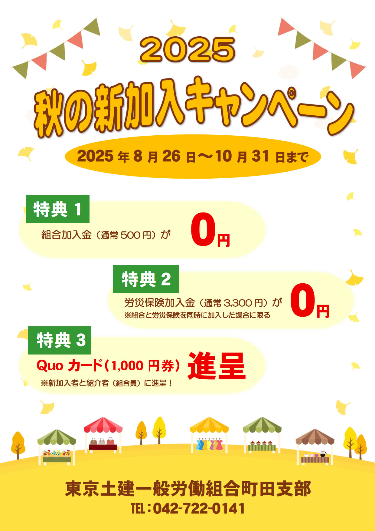 町田支部では、8月26日から10月31日まで「秋の新加入キャンペーン」を実施しています。