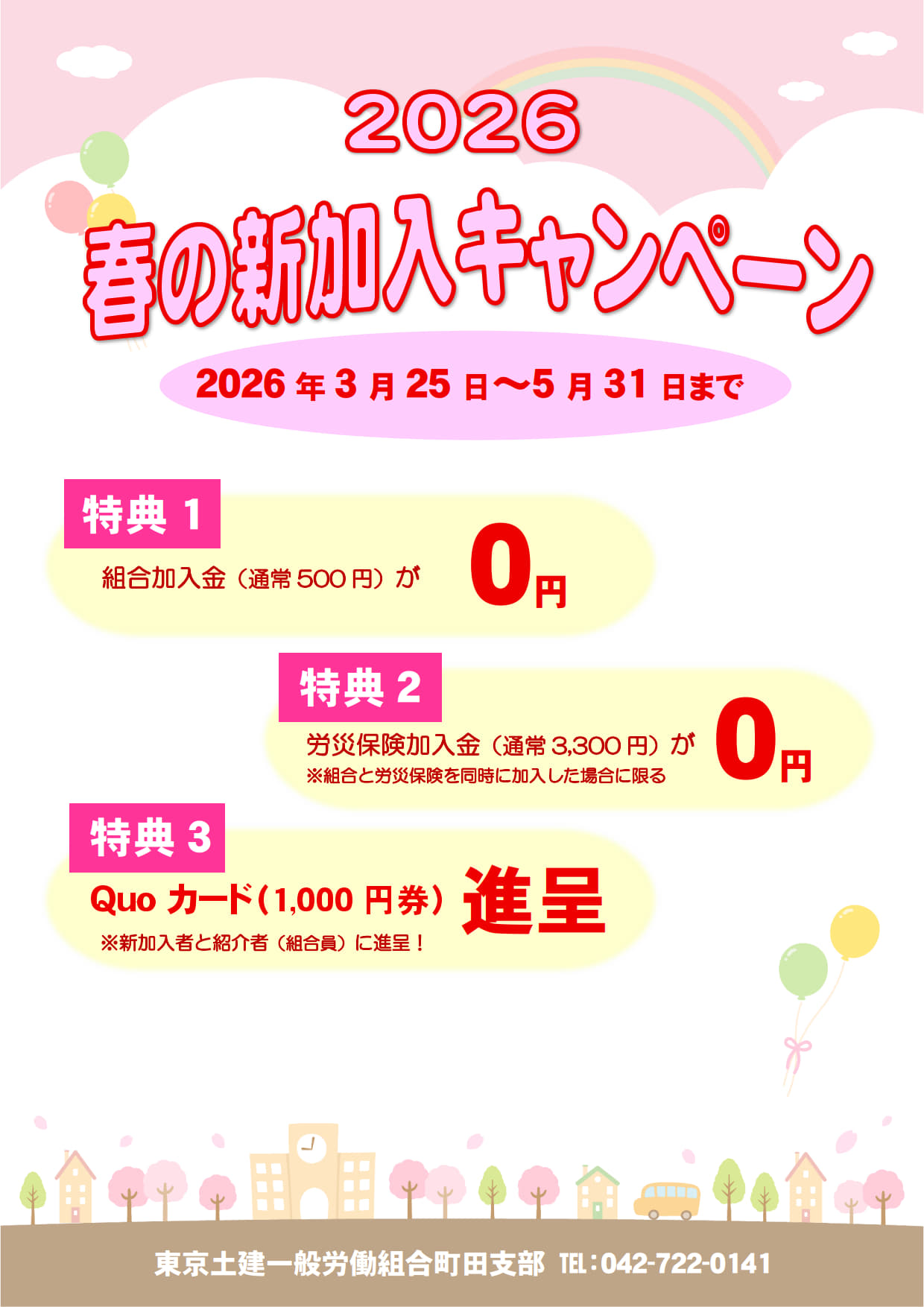 町田支部では、3月25日から5月31日まで「春の新加入キャンペーン」を実施しています。